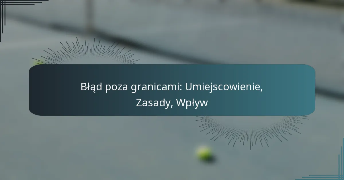 Błąd poza boiskiem występuje, gdy zawodnik lub piłka przekracza wyznaczone linie graniczne obszaru gry, co skutkuje przerwaniem gry lub nałożeniem kary. Ta zasada jest kluczowa w różnych sportach, ponieważ pomaga utrzymać integralność gry i definiuje granice, w których dozwolona jest rozgrywka.